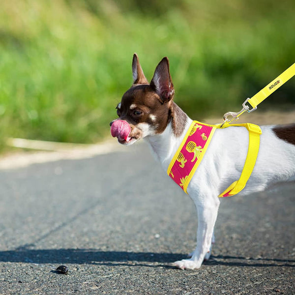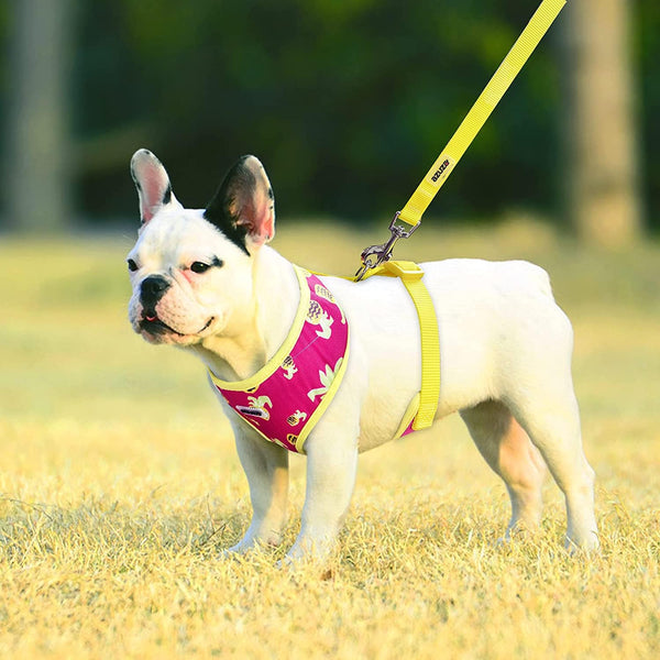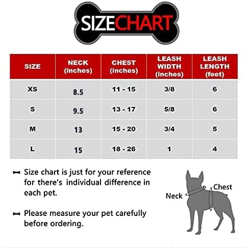 Note - The small dog harness can't adjust around the neck, so please make sure dog's head can go over it. Size L is 15" inch in the neck girth and 18 -26 inch of chest girth. Great choise for puppies, small dogs and medium dogs. High-Quality Material - Our no pull dog harness is made with light weight, soft and optimal mesh, oxford and polyester materials. It creates a soft comfortable feeling for your pets. The dog harness can be adapt to hand wash, machine wash and dry cleaning. Hang to dry (tumble dry not recommended). Easy on and off - Is it always a struggle trying to get your pet in most harnesses? Well, you’ll love just how easy this slide over head harness is to put on! Simply slide your dog’s head through the dog harness neck piece and secures with buckles on the side of his chest. Dog Harness and Leash Set - Dog harness with leash set design. Make it easier for you and your pet to go out. Put on beautiful and cute harenss and the leash to go for a walk with your dog. GUARANTEE - We stand behind every dog harness we sell. All the harness can be returned or exchanged unconditionally if you're not happy. Please share your photos and we'll include some on our store page. *Browse our store for other products*