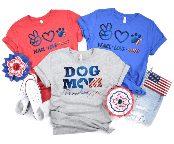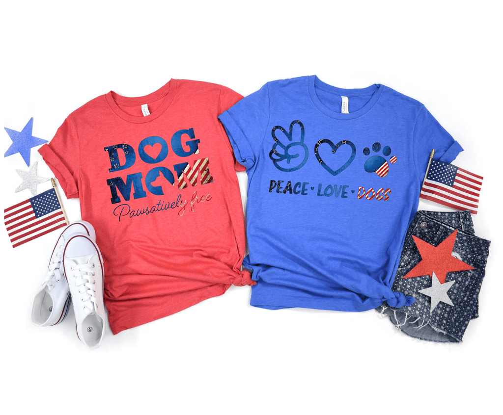 Show your patriotism and your dog mom pride with this fun Patriotic American Dog Mom Tee. This dog mom tee shirt comes in 4 colors. Choose from white, heather red, athletic heather, or heather royal blue.