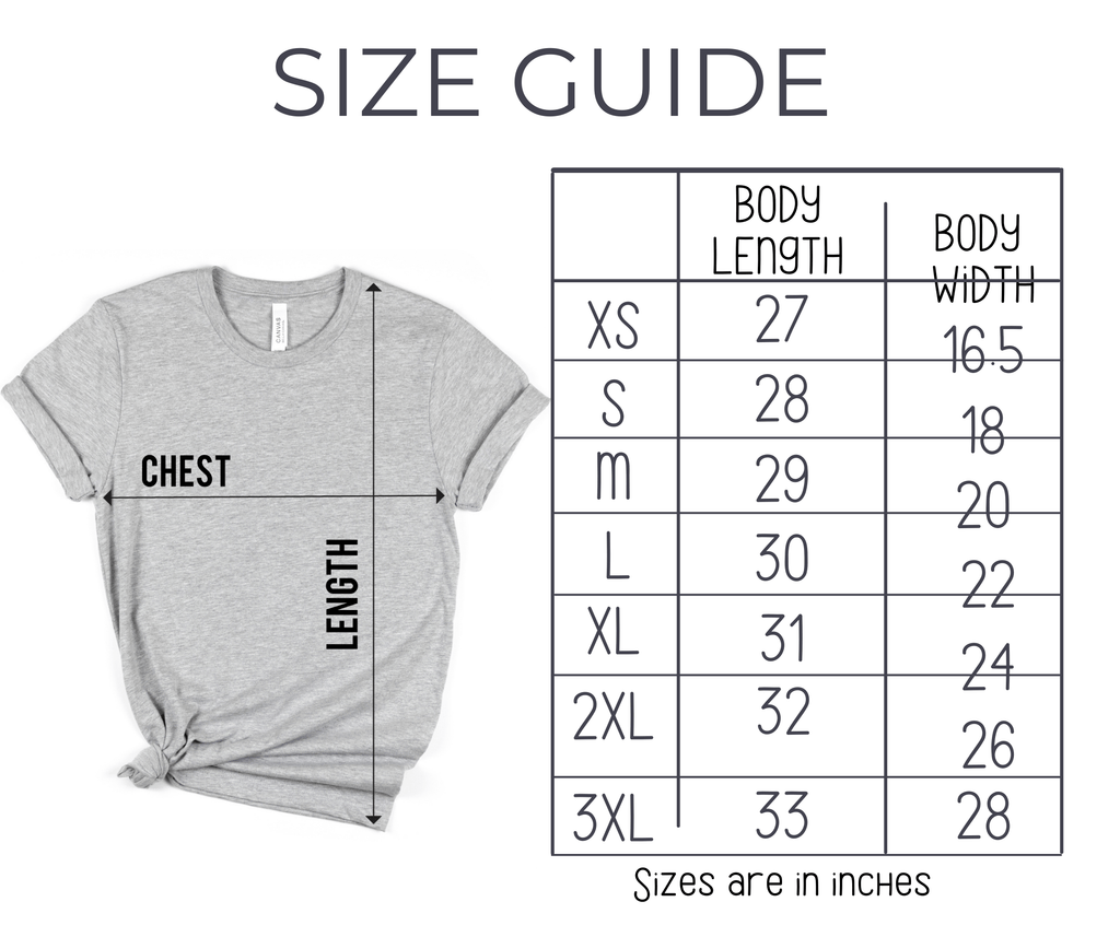 -Since tees are unisex, we recommend your true size for a loose fit or size down for a fitted fit.